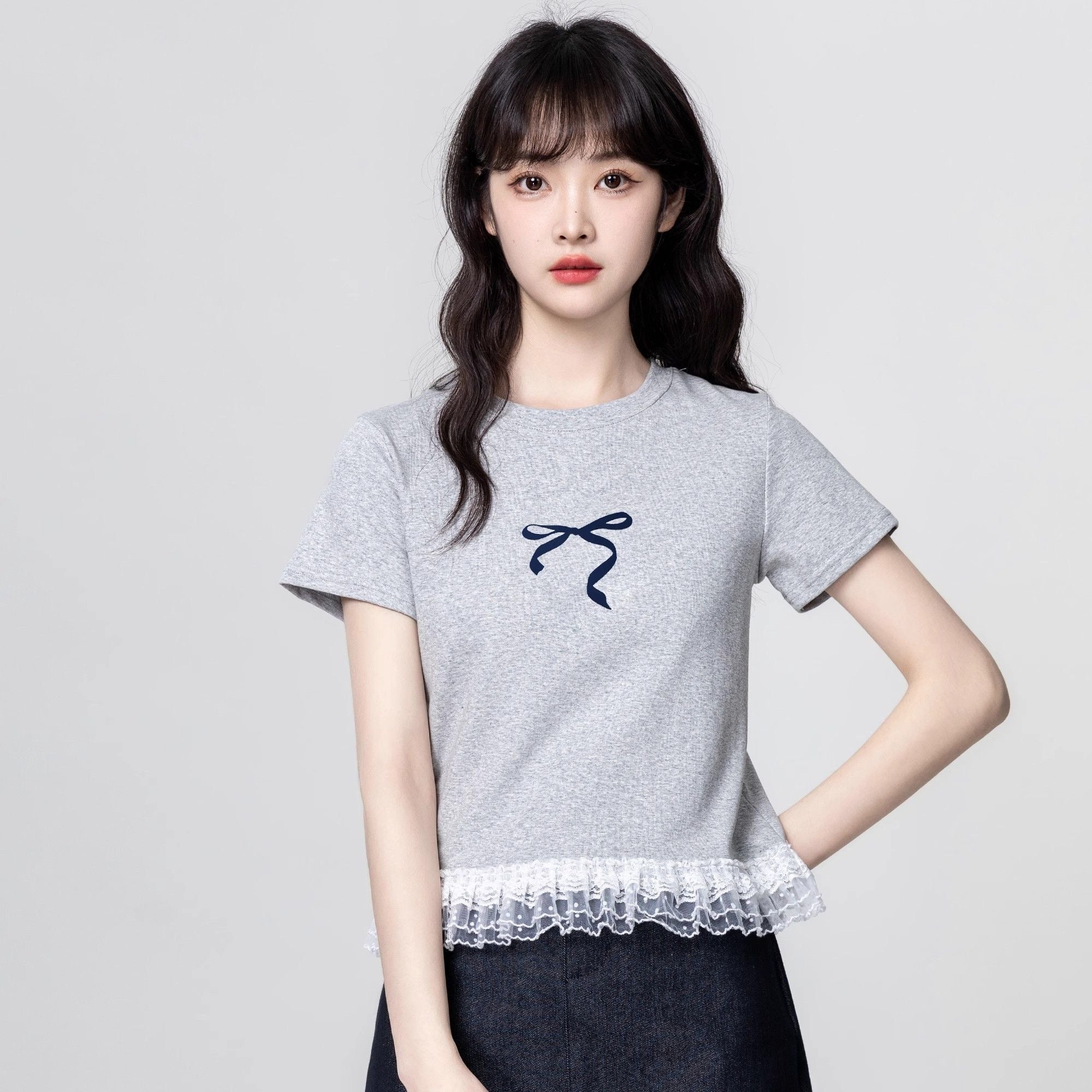 シンプルリボンモチーフが上品な甘さ ベーシックグレーで毎日コーデ自在 ✨洗練されたカジュアル女子に✨ |