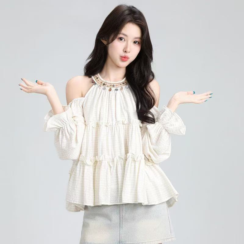 ✨今季イチオシ!ホルターネック×ショート丈で若さとセクシーを両立 ゆったり袖がふんわり可愛さ♡ 肩元の魅せ切りで大人っぽい魅力 シンプルなのに存在感抜群!カジュアルもデートも瞬時にオシャレUP |